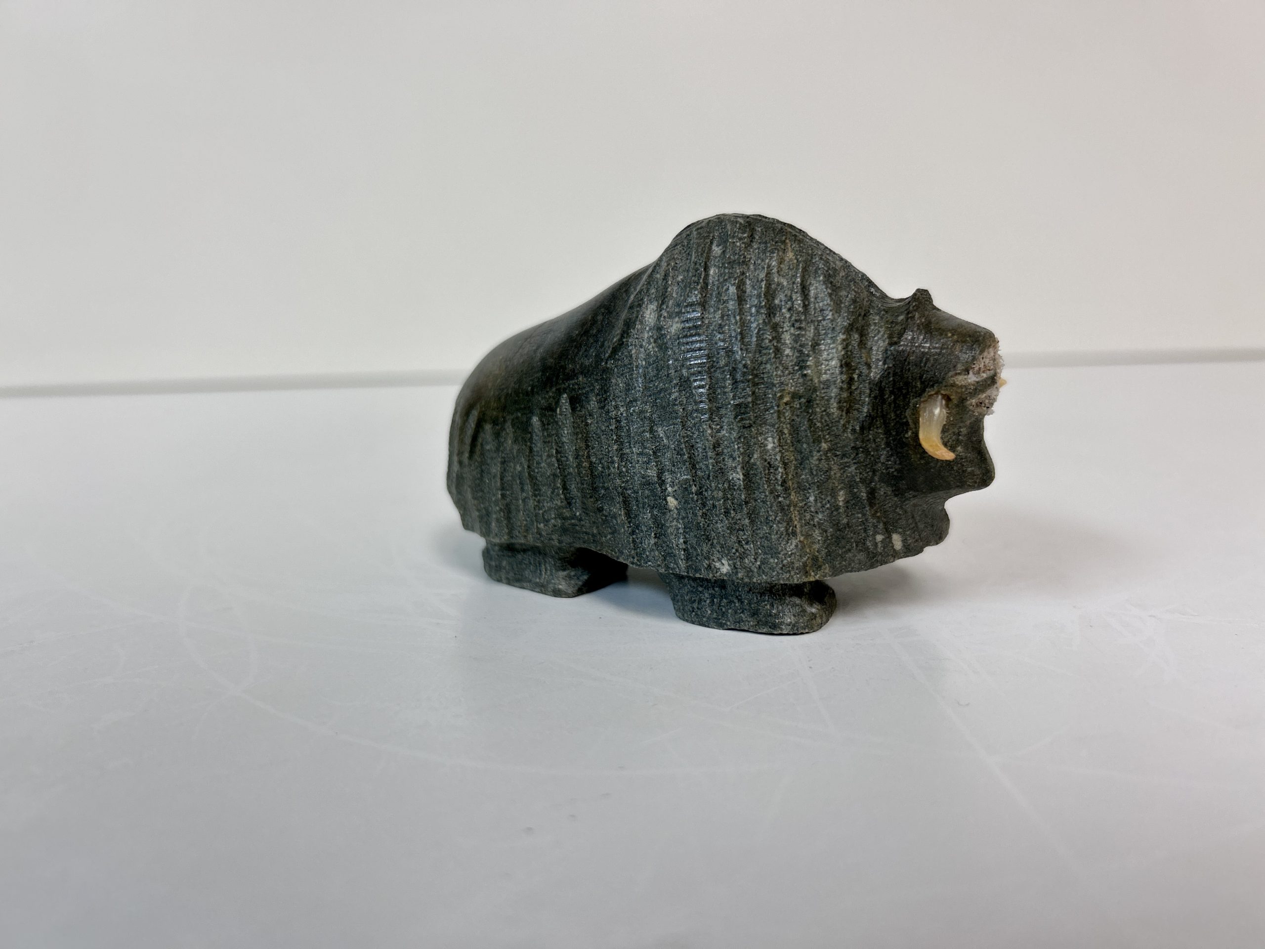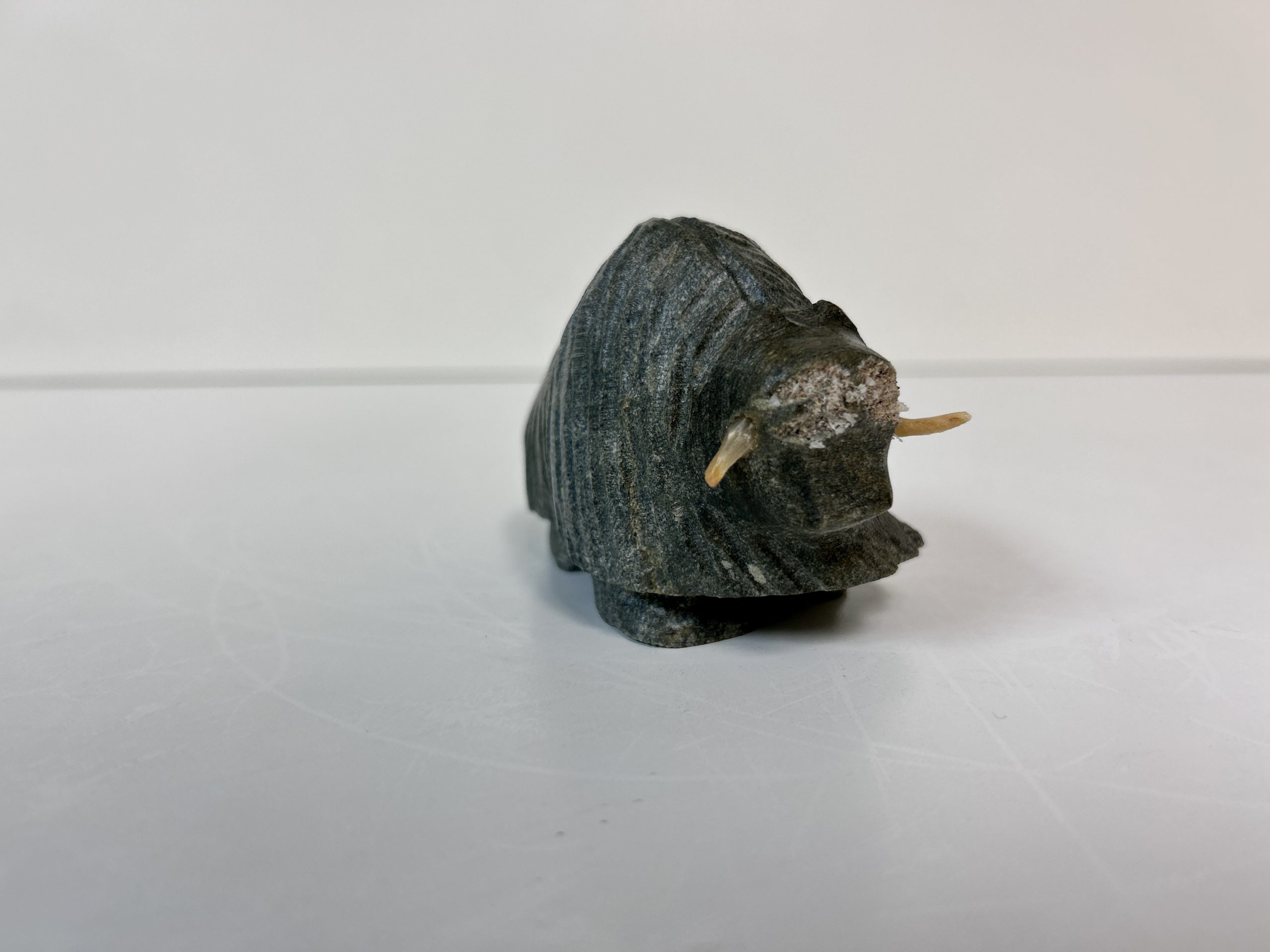 “Large Muskox” original soapstone carving by Anthony Antoine Medium: Soapstone and Muskox Horn The muskox horns are made from real muskox horn, making this carving a truly unique treasure Signed by artist. Comes with signed certificate of authenticity. 9″ … Read More