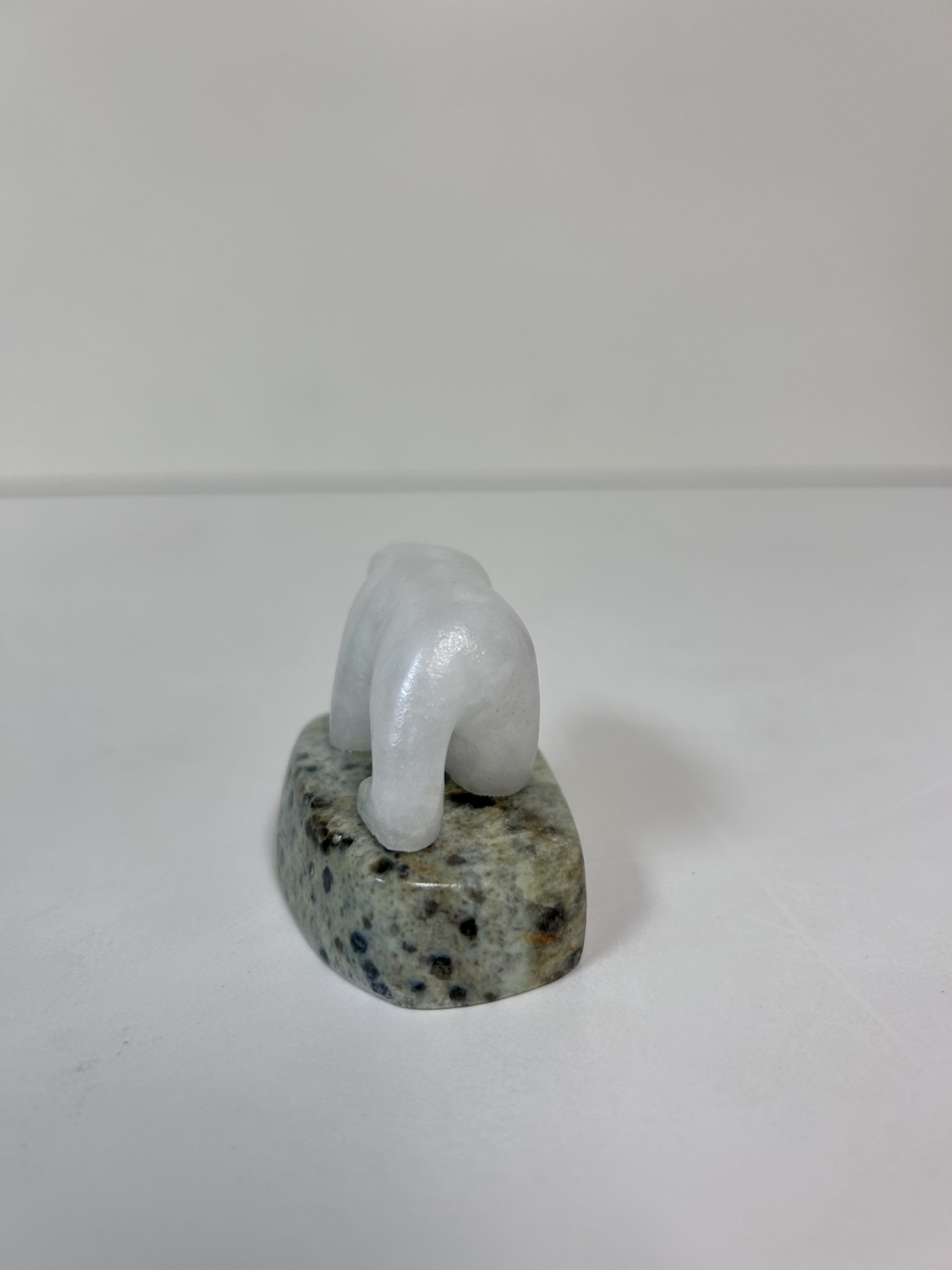 “Polar Bear on the Paw Print” original soapstone and alabaster carving by Anthony Antoine