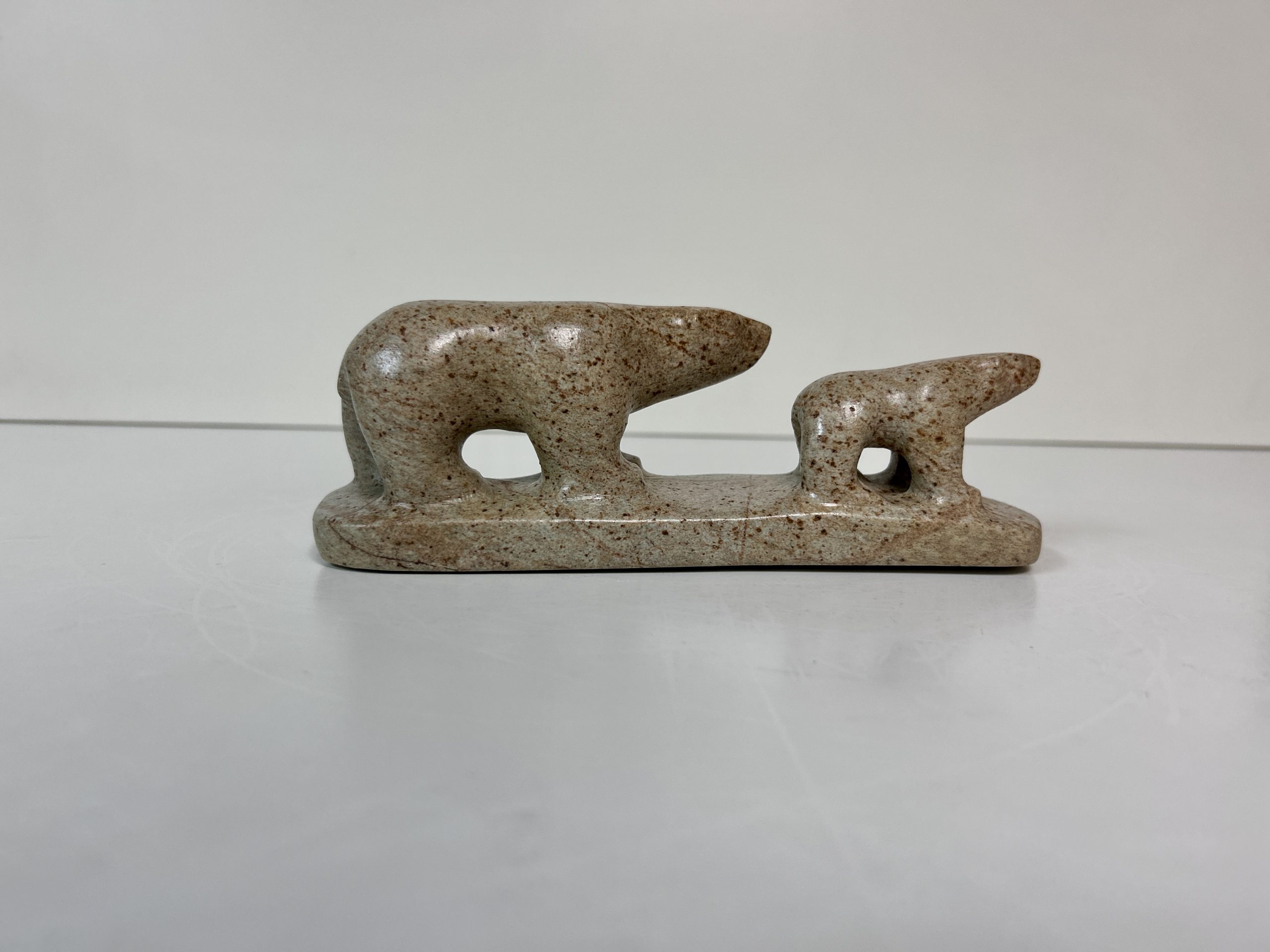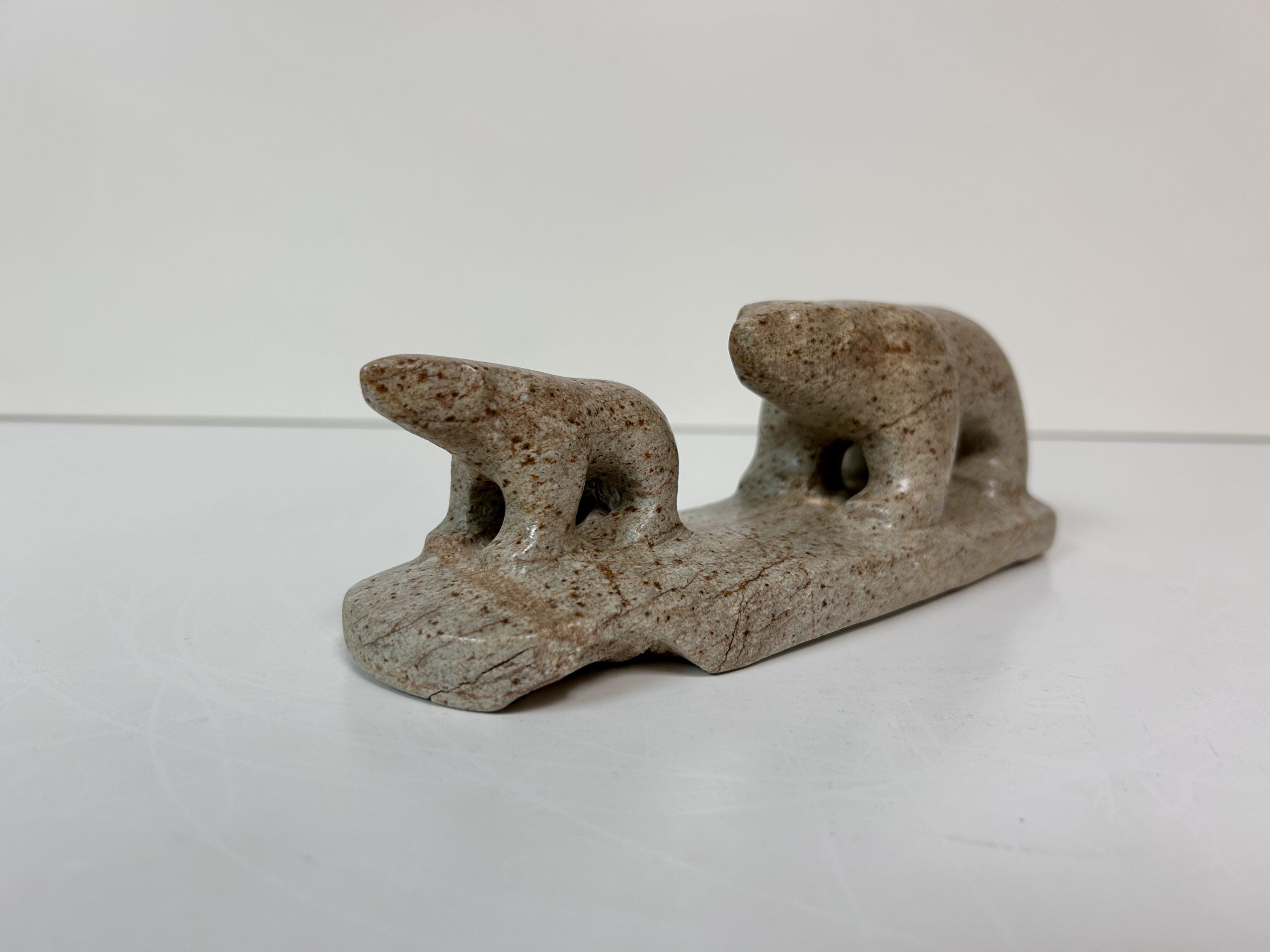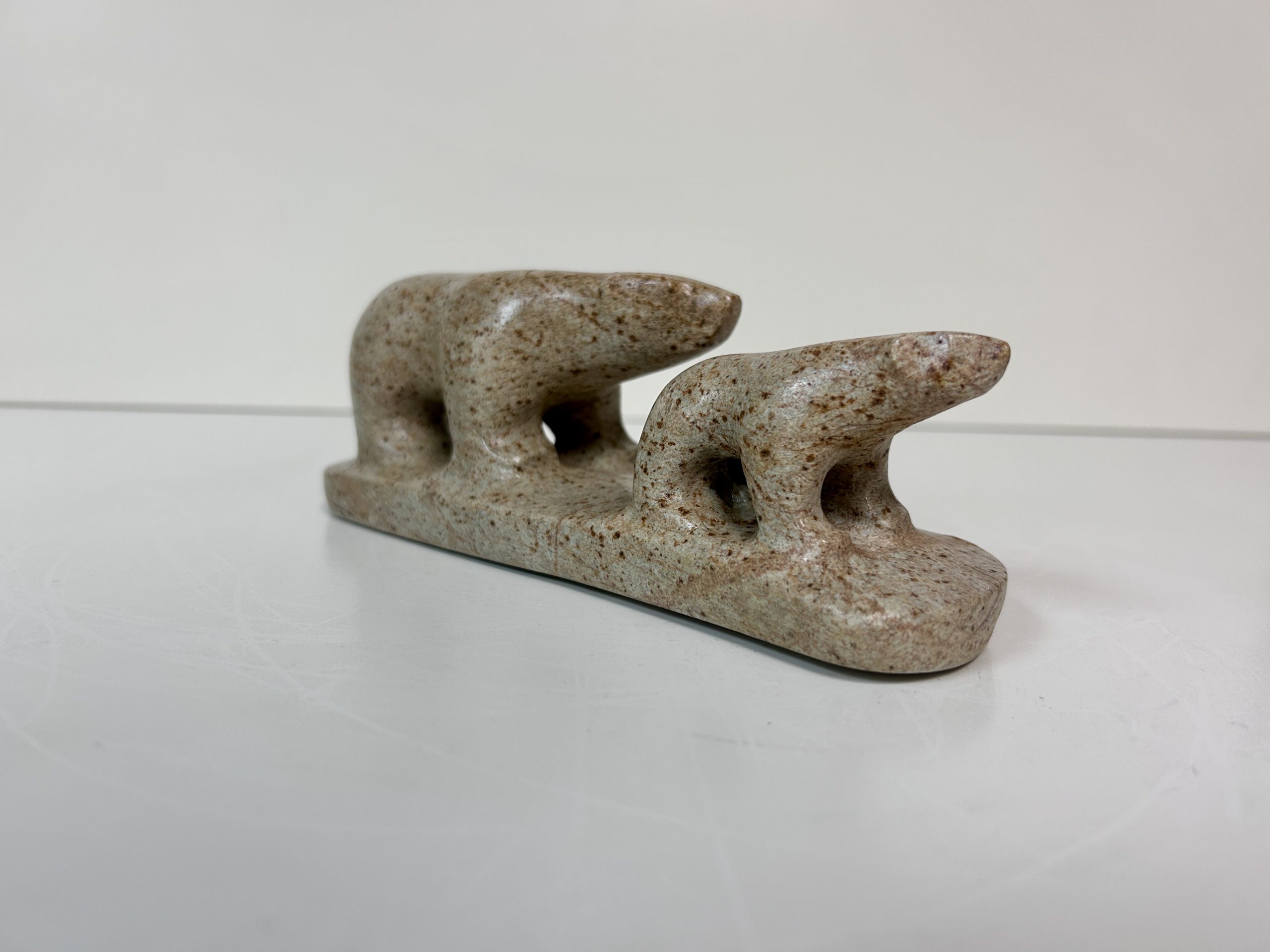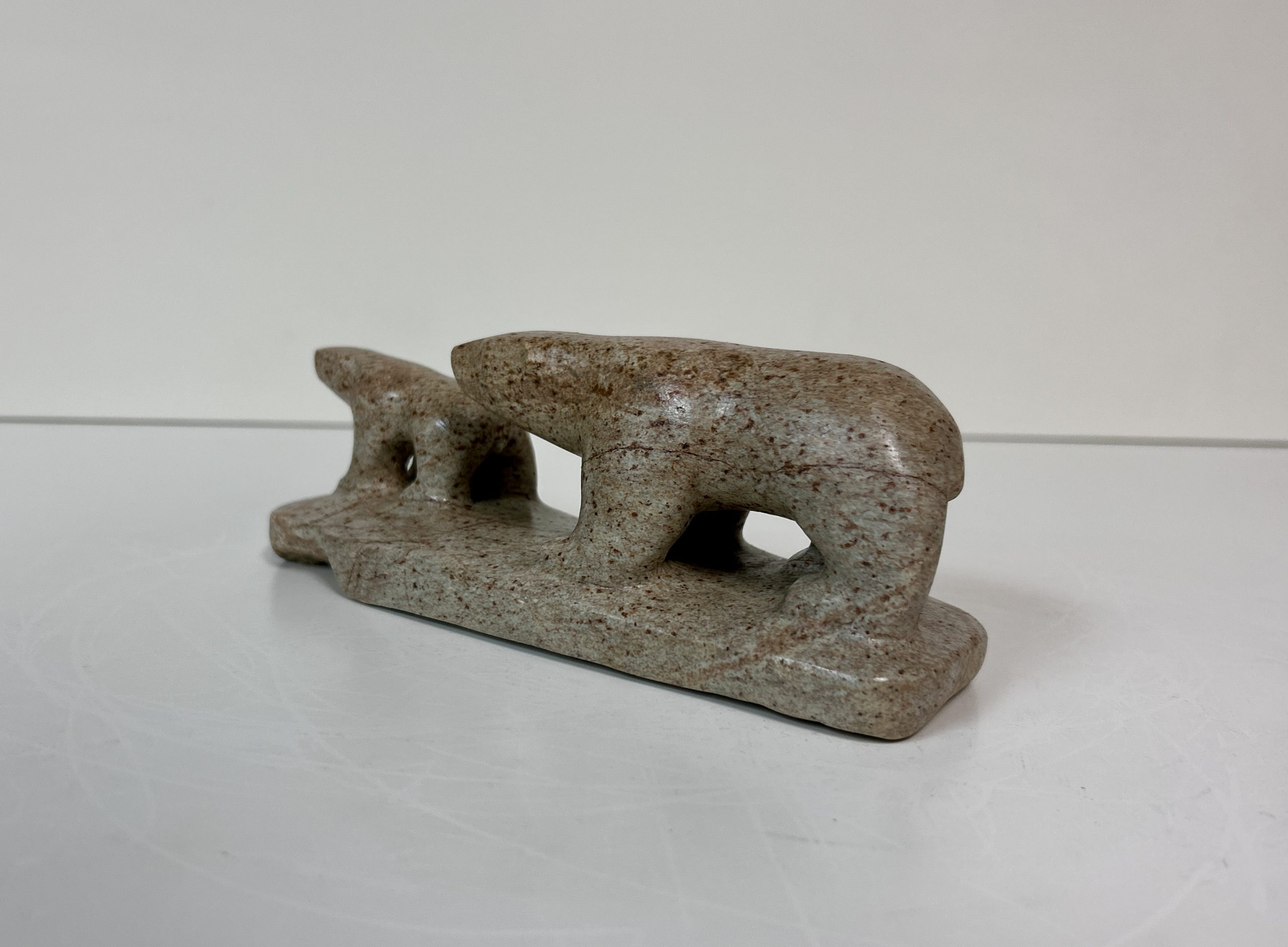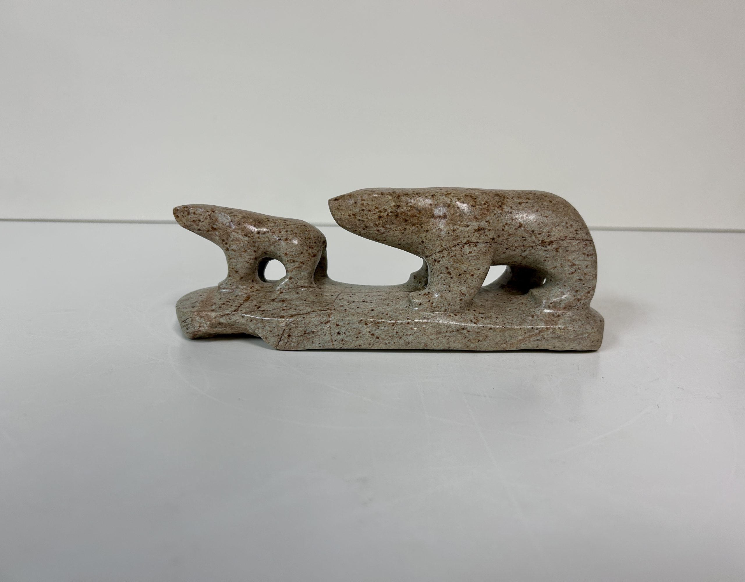 “Someday the Young will Lead” original soapstone Polar Bear and Cub carving by Anthony Antoine