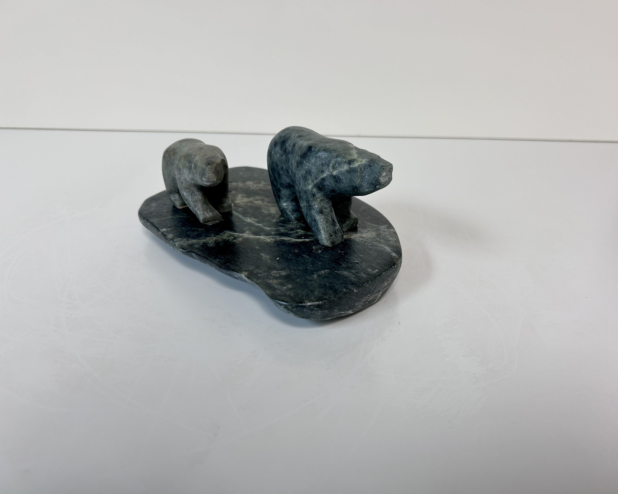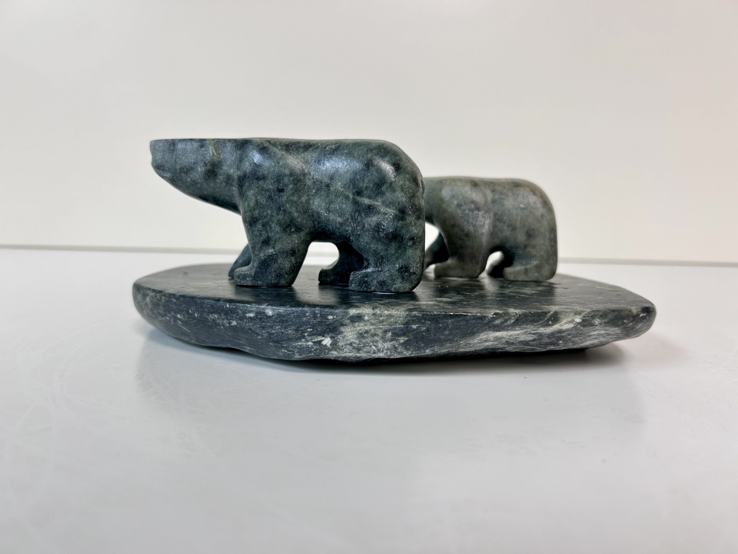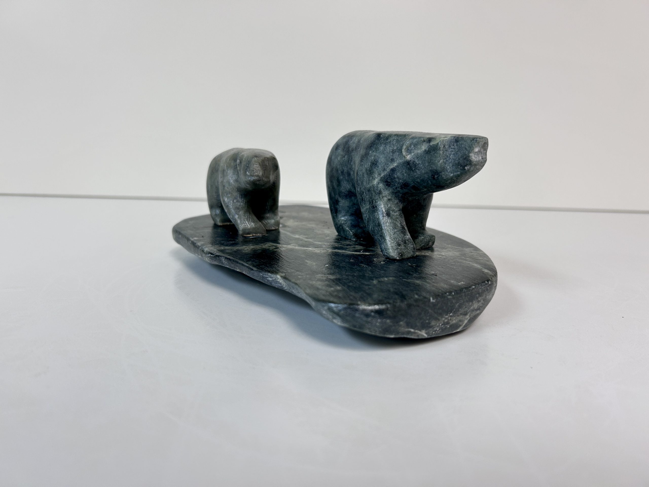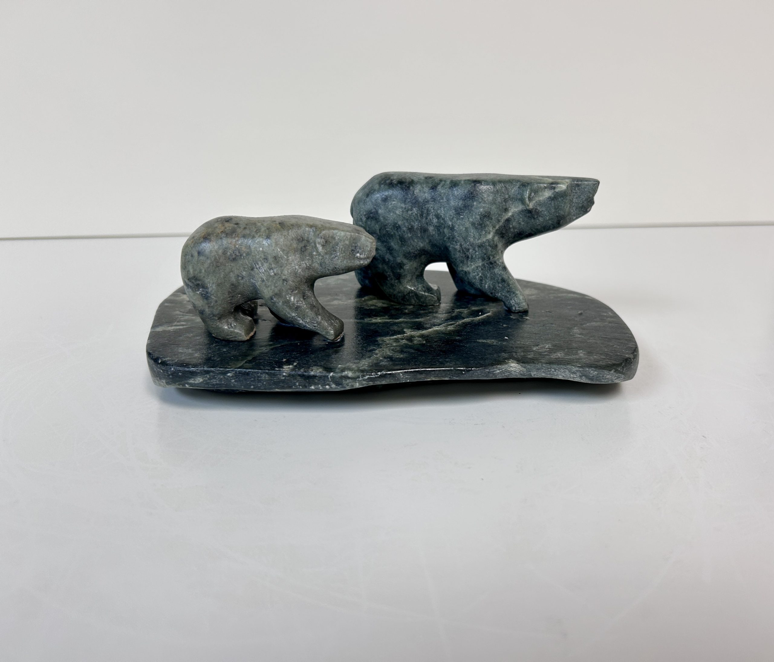 “Two Polar Bears on Ice” original soapstone Polar Bear and Cub carving by Anthony Antoine