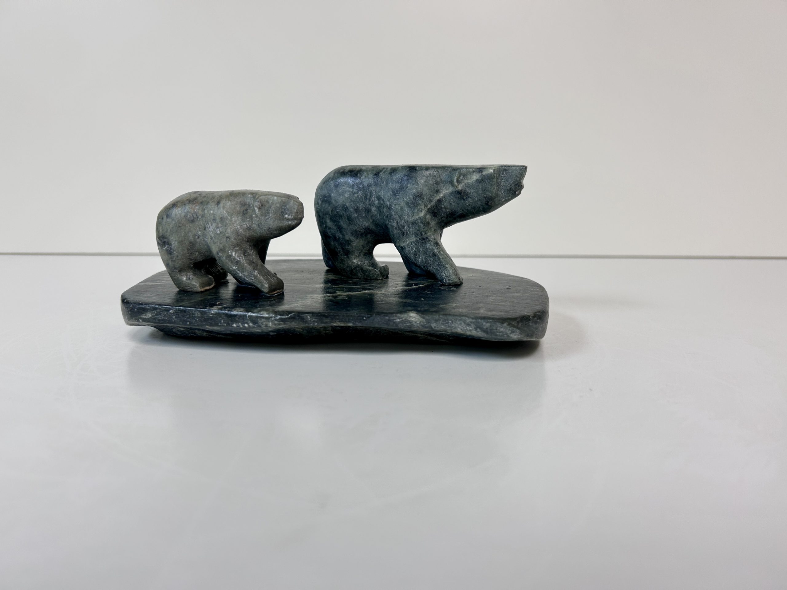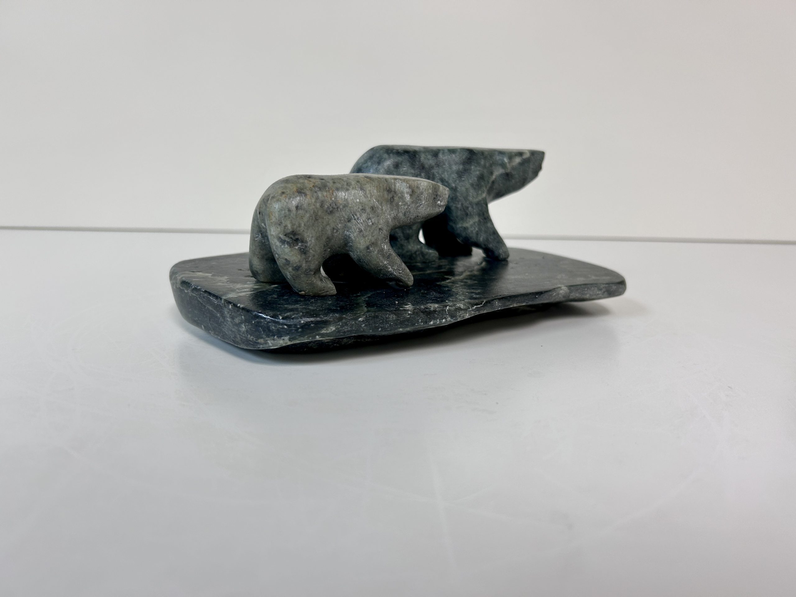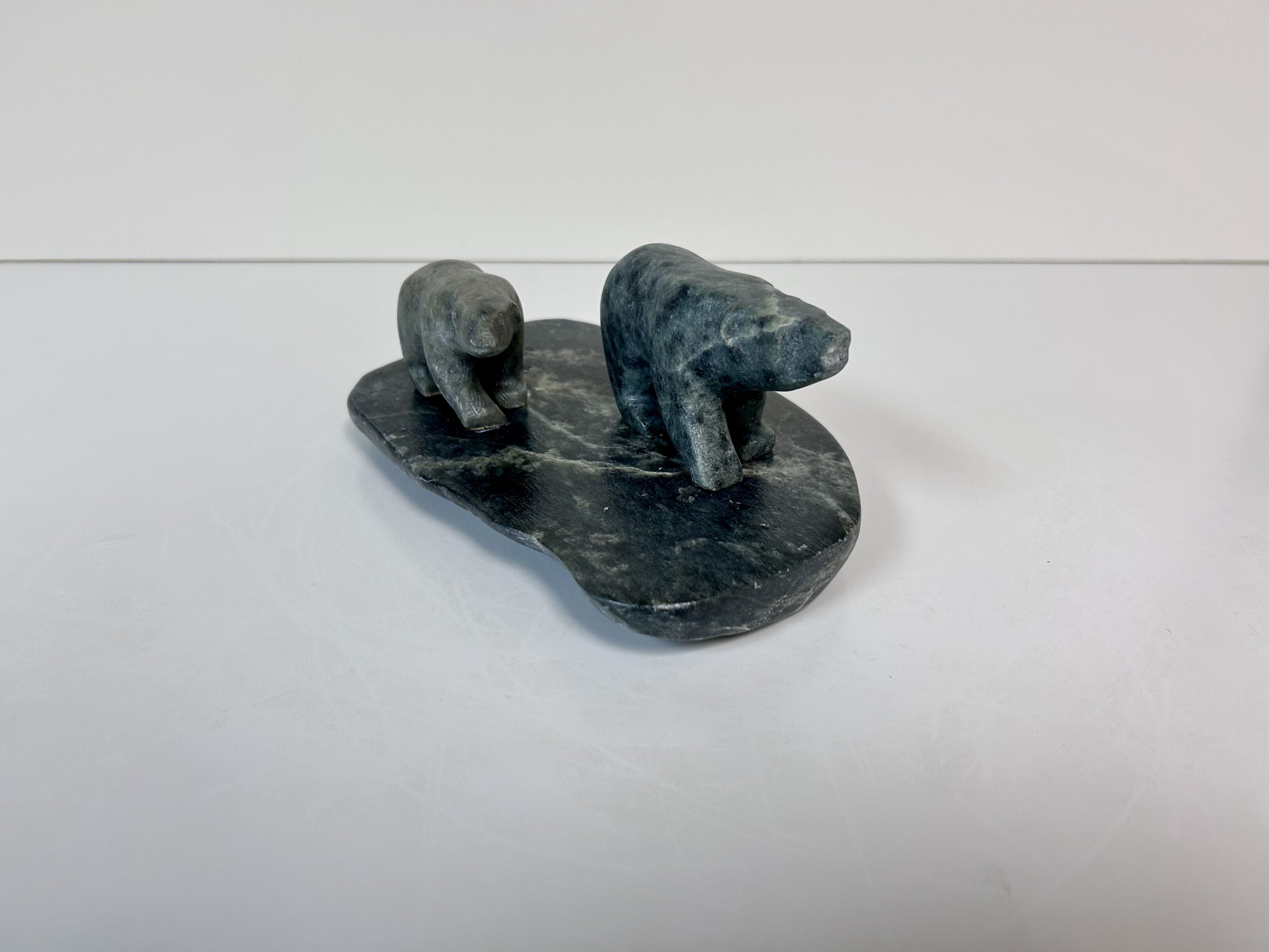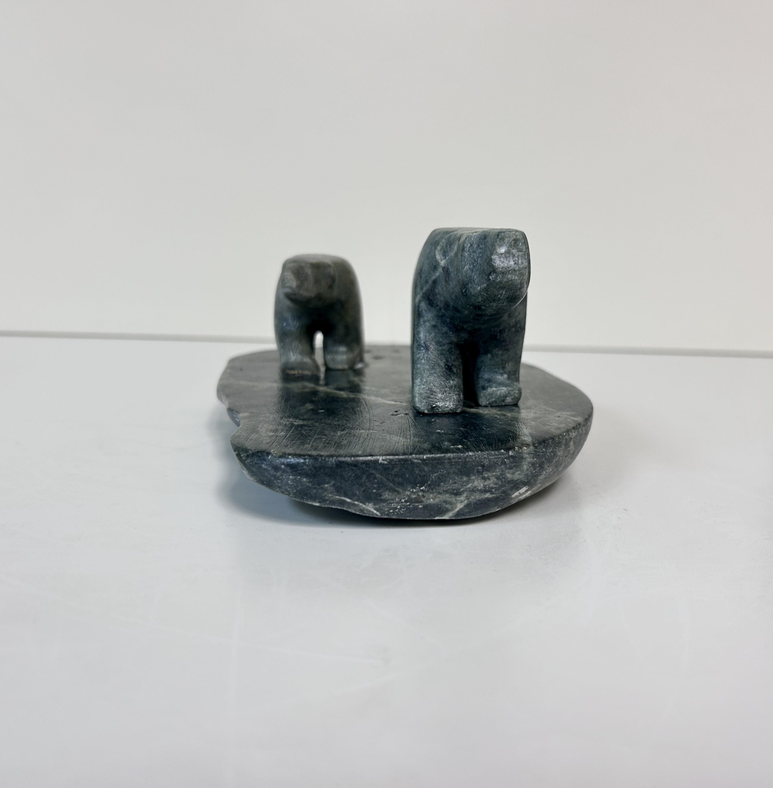 “Two Polar Bears on Ice” original soapstone Polar Bear and Cub carving by Anthony Antoine