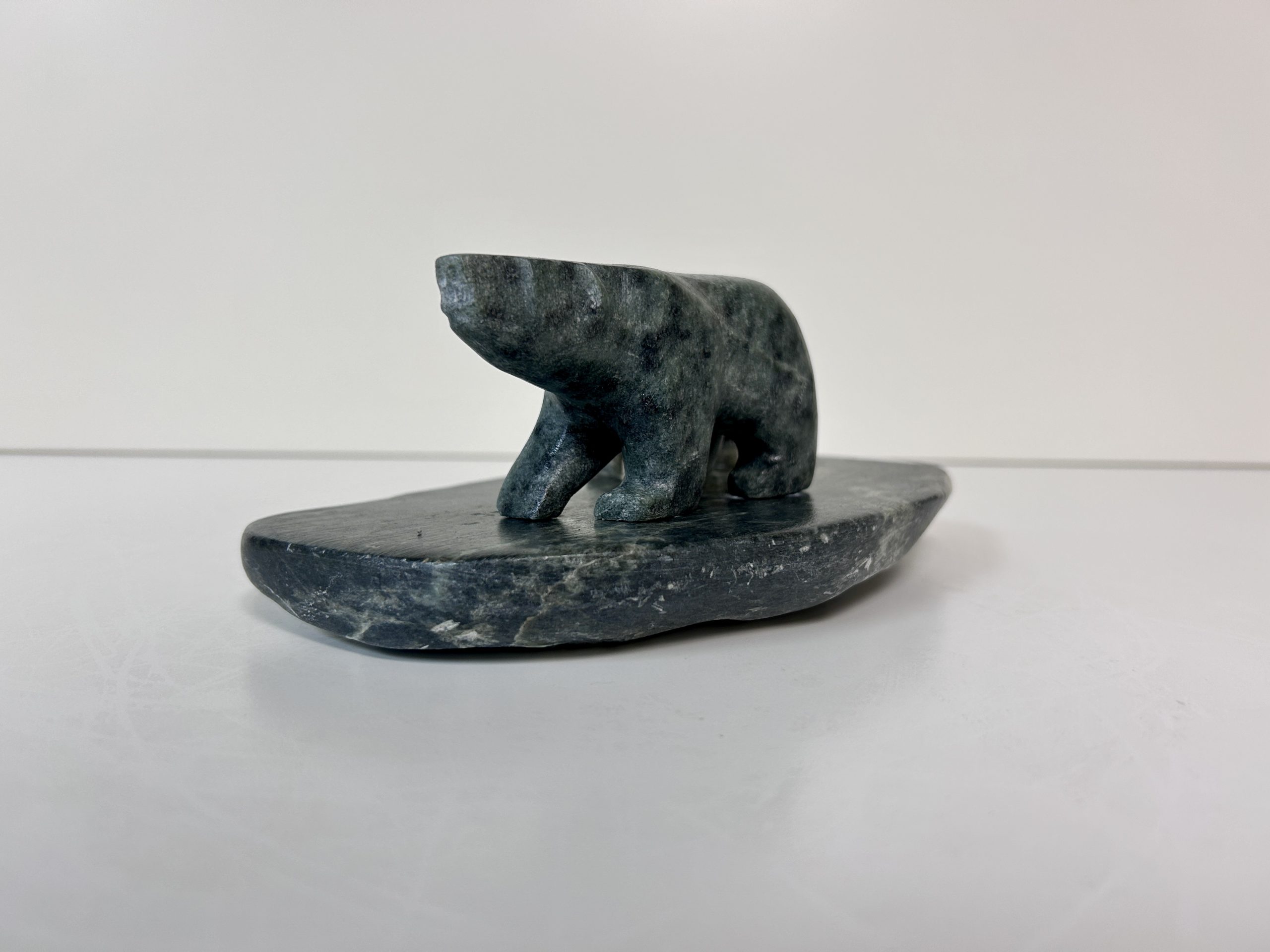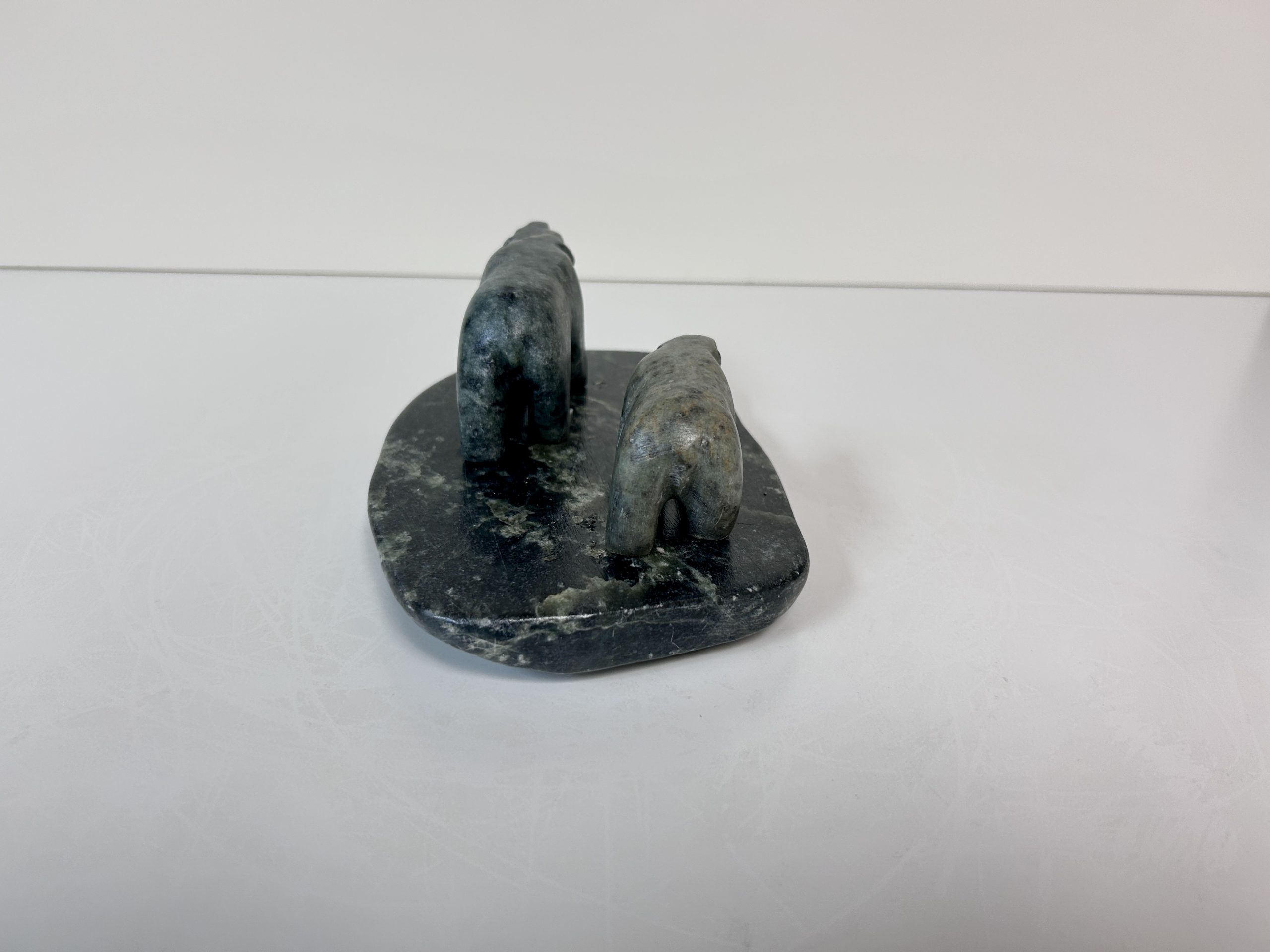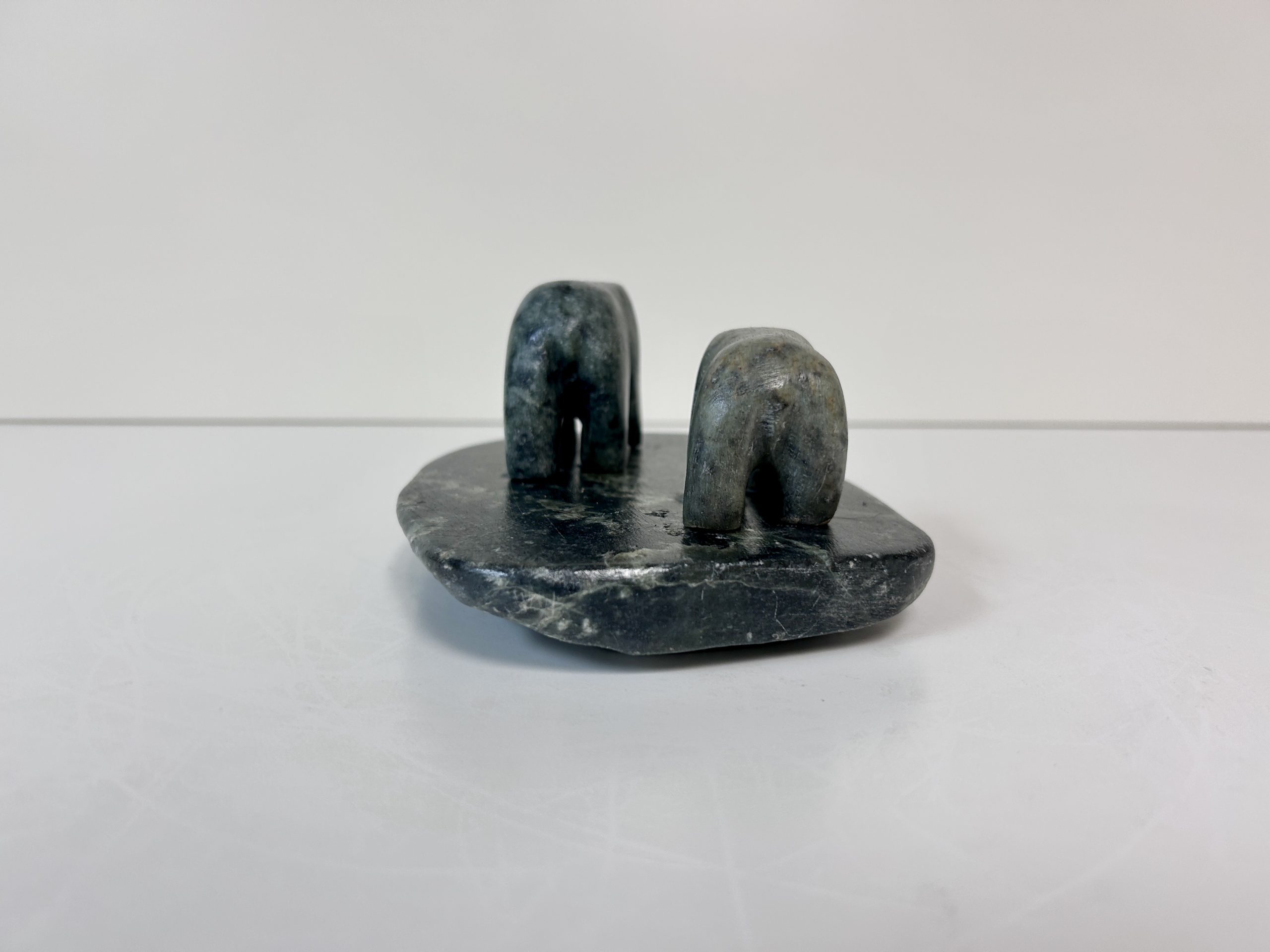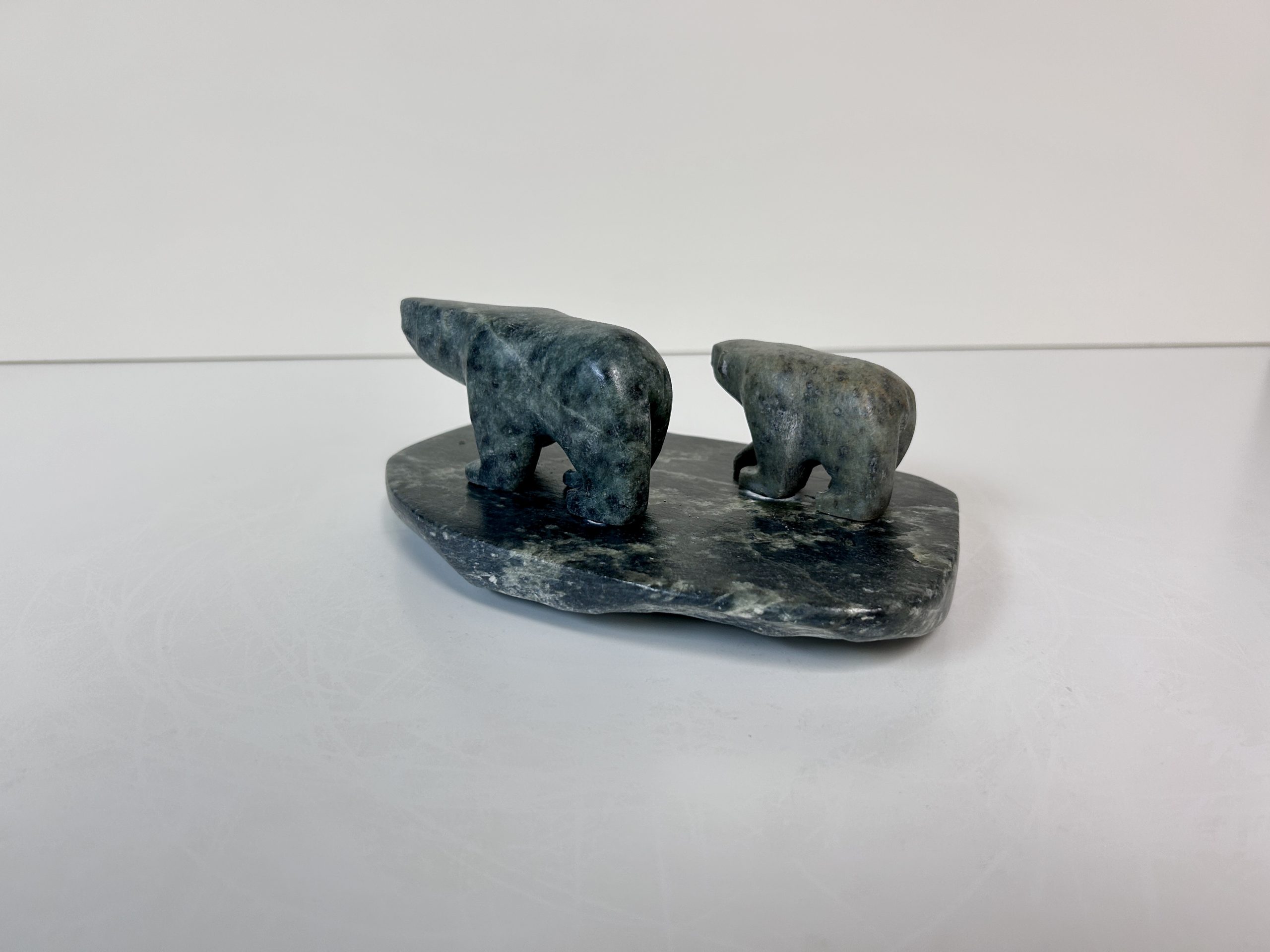 “Two Polar Bears on Ice” original soapstone Polar Bear and Cub carving by Anthony Antoine
